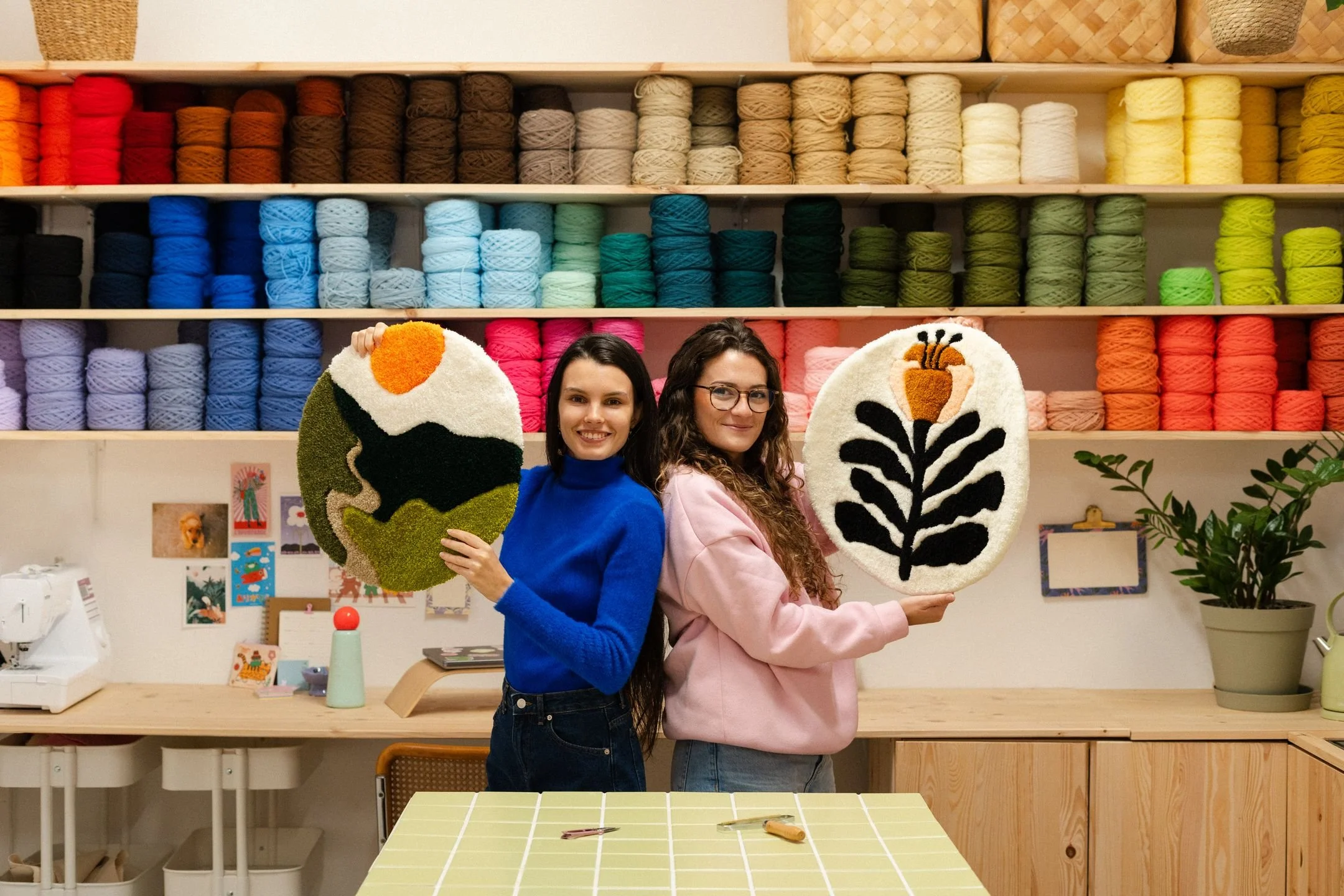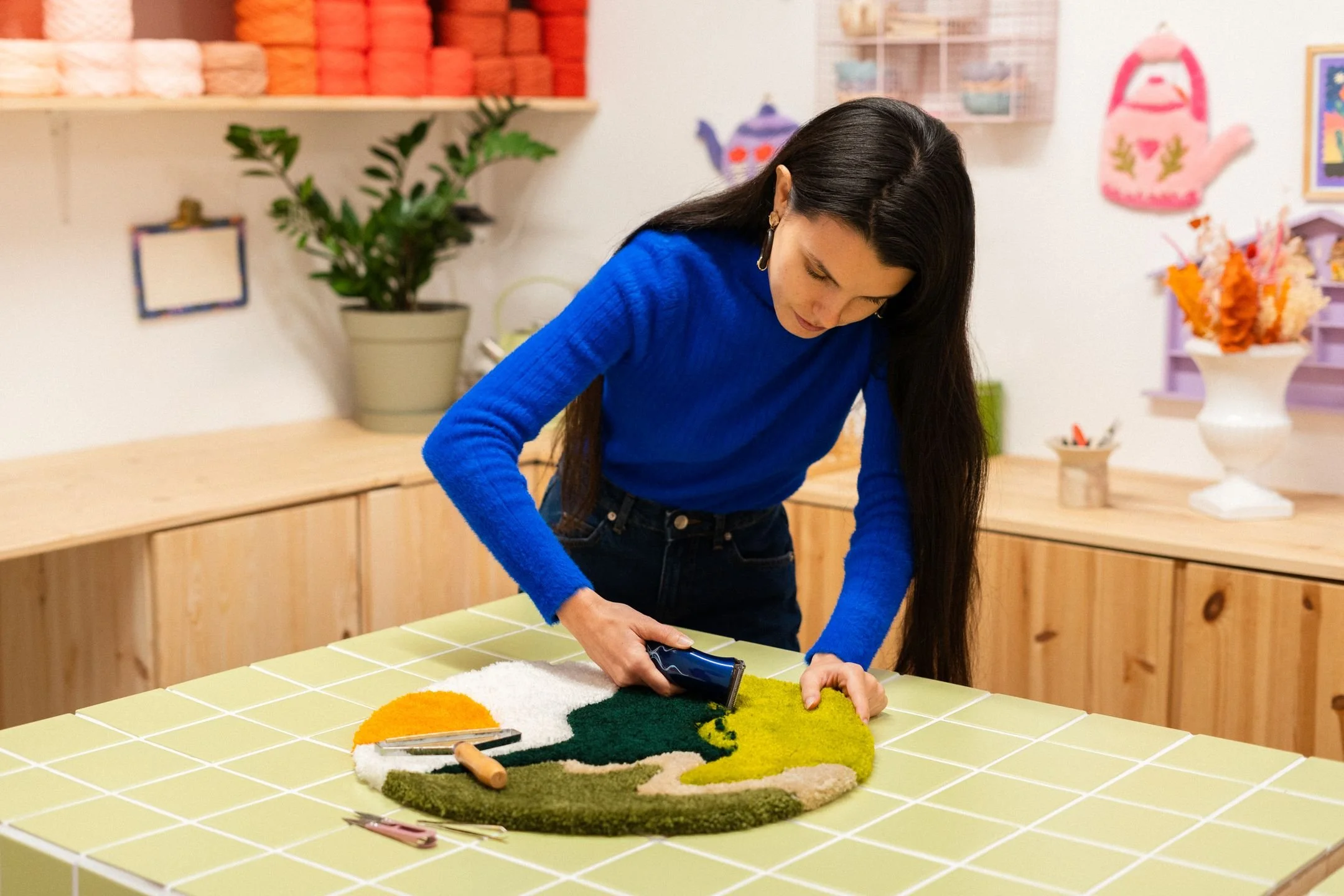 Bien évidemment ! À l'atelier, je propose plus de 50 couleurs de laine pour que vous ayez un large choix et puissiez créer un tapis parfaitement assorti à votre décoration intérieure ! Vous aurez accès à un bar de couleurs de laines tuftées pour sélectionner exactement celles qui s’harmonisent avec votre décoration.